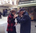 Una instancabile Ragazza CaLibro spiega il nostro progetto ai passanti.